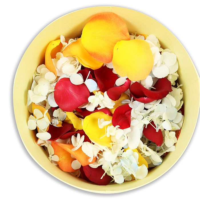 Celebrate special moments with our unique and beautiful bouquet, featuring a graceful mix of hydrangea, rose, and chrysanthemum petals. The vibrant colors and elegant design make this arrangement a standout choice for any event.